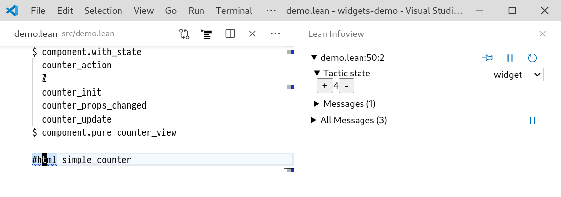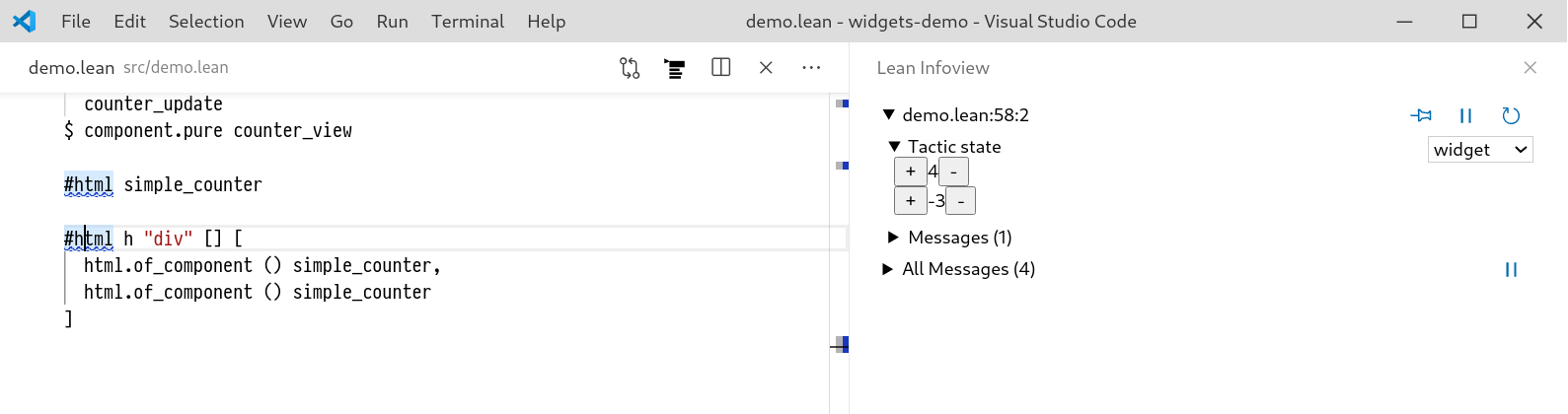 and the ProofWidgets framework will automatically track an independent state for the two different counters, even when more components are added or taken away.