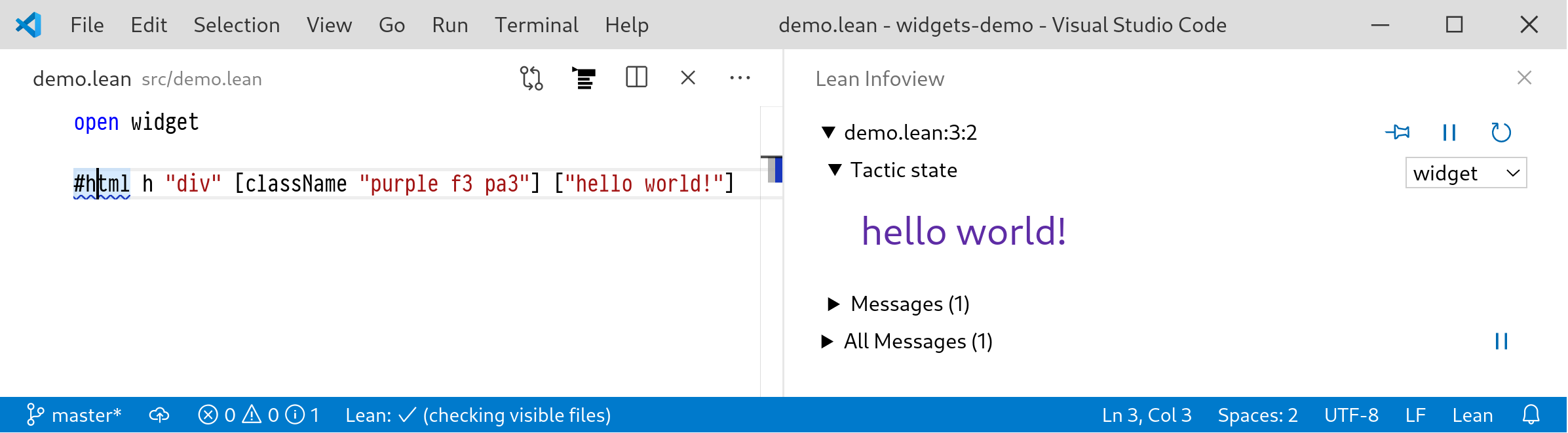 Making a widget is as simple as opening a Lean file in VSCode and adding the following snippet: